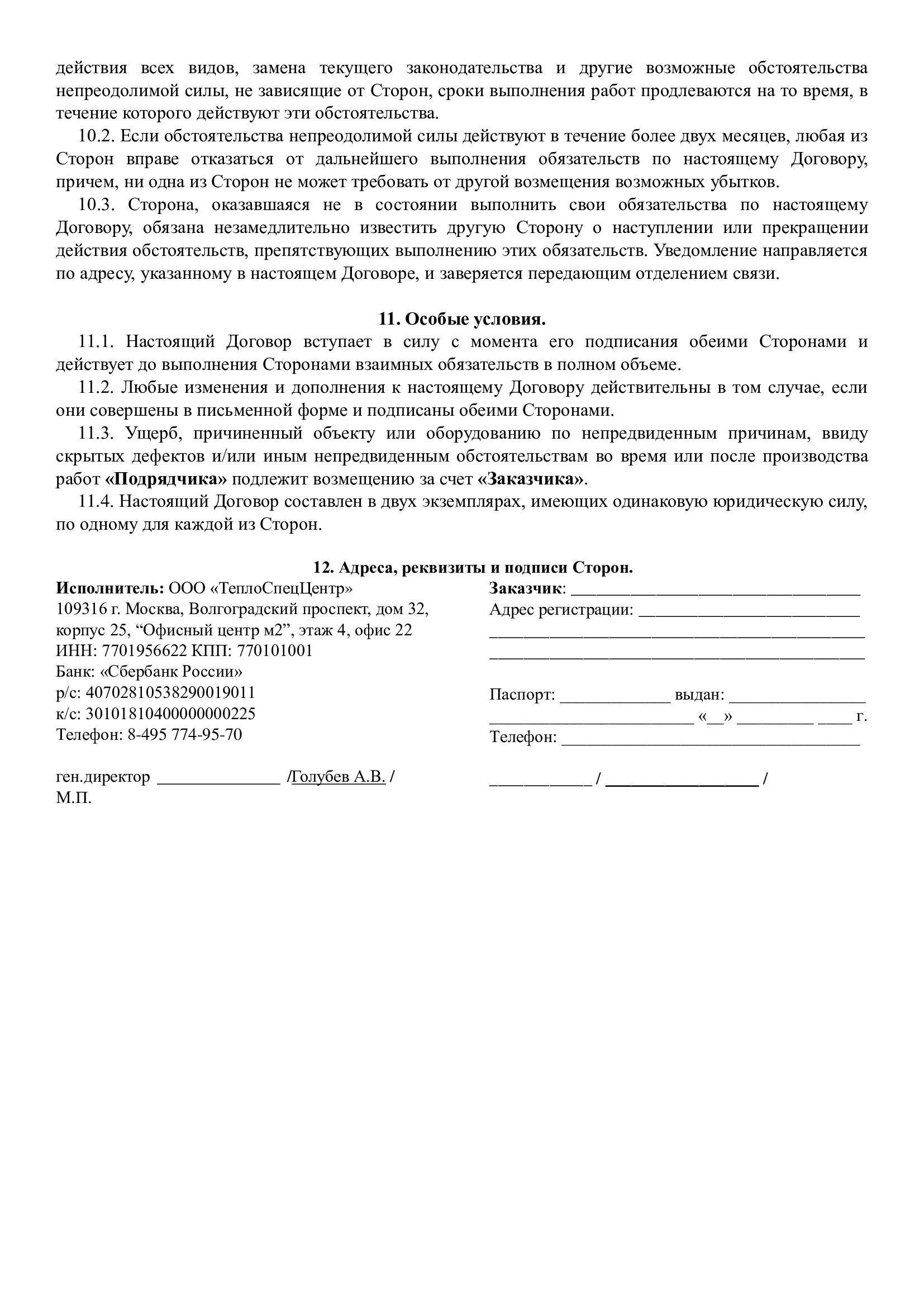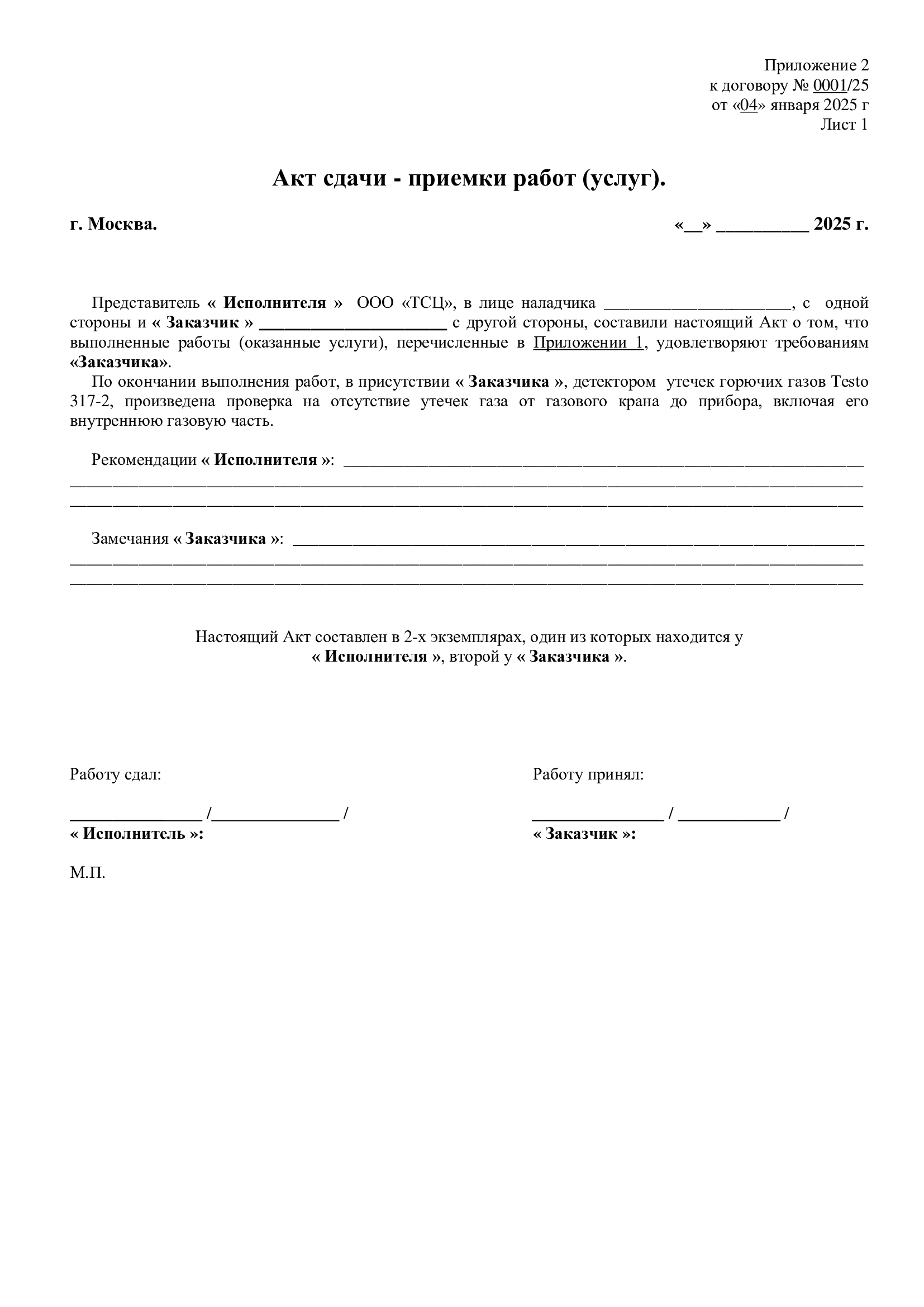 Внимание! Повторное изменение подписанного договора на техническое обслуживание газового оборудования по причине неправильно или неполно указанных Заказчиком данных в анкете платное, стоимость услуги составляет 500 рублей.