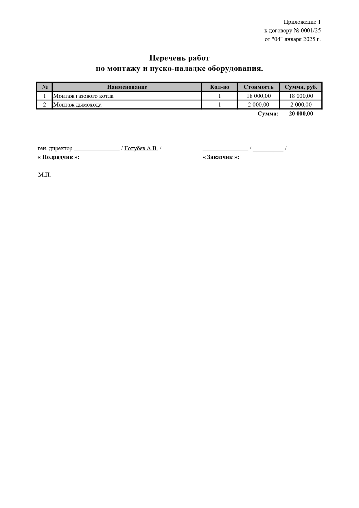Договор на монтаж и/или пуско-наладку ВКГО - 3 000 рублей*